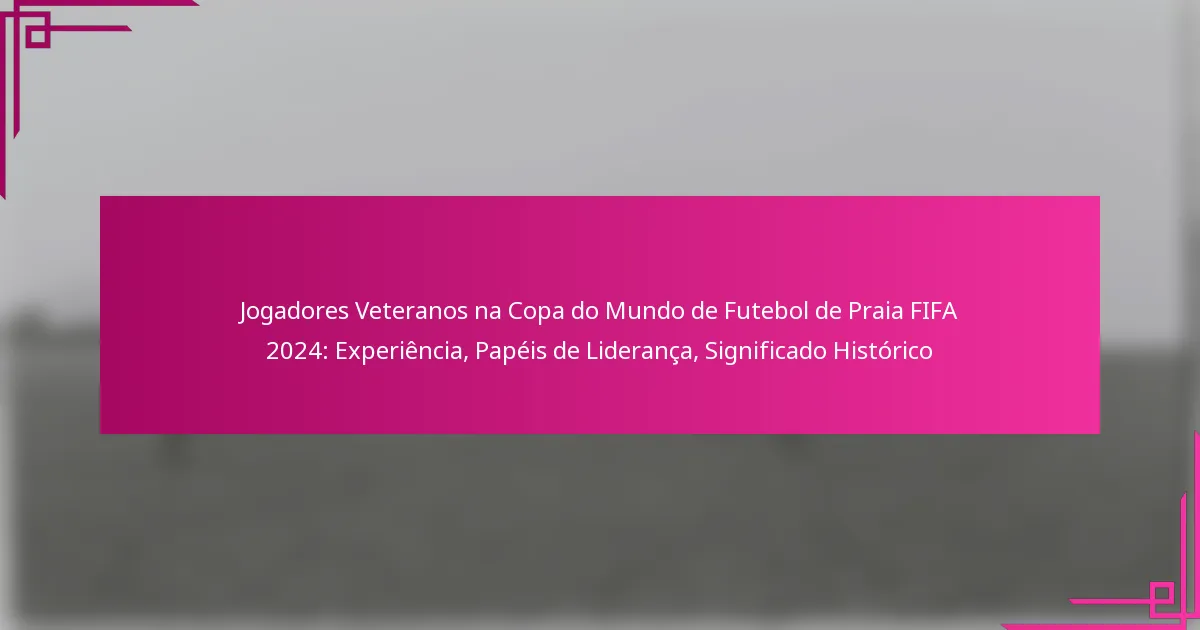 O que define os jogadores veteranos na Copa do Mundo de Futebol de Praia da FIFA 2024?
